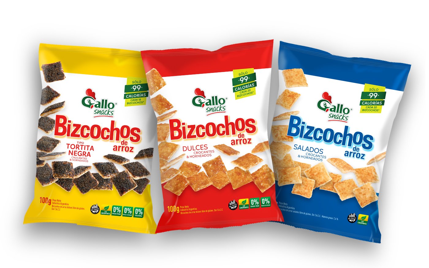 Muy pocos pensaban que el arroz podría ser un snack. Molinos, acompañando la tendencia mundial hacia la comida sana, nos invitó a replantear la marca Gallo, líder en la categoría de arroz, para llevarlo hacia una nueva categoría. Diseñamos la identidad de Gallo Snacks y su línea de productos, y logramos posicionarla como la alternativa de snacks ricos y saludables.