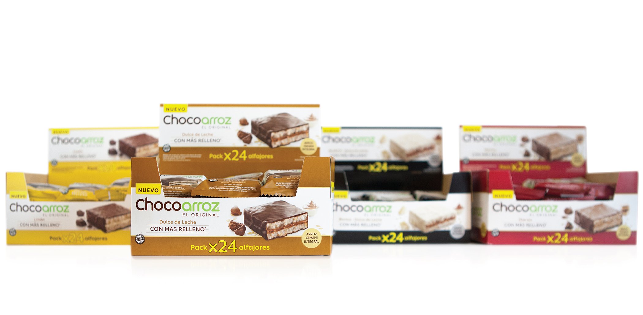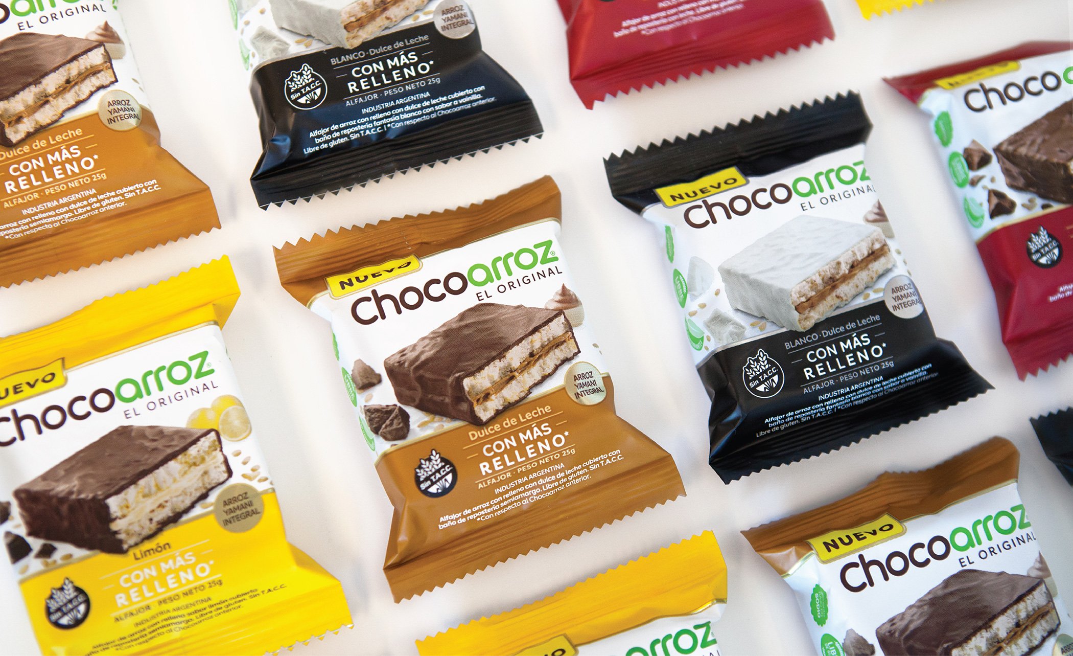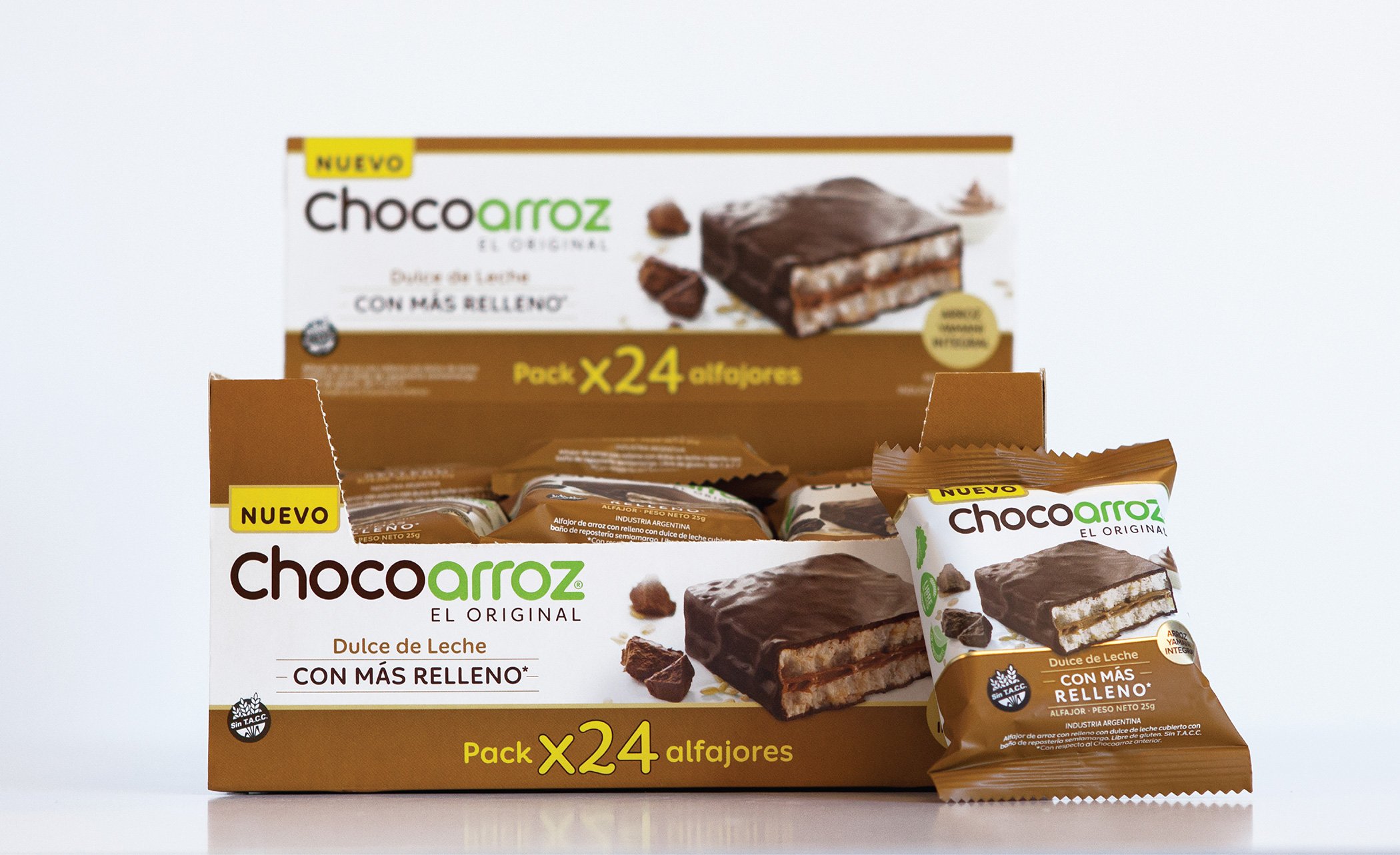 Molinos Río de la Plata adquirió Chocoarroz, marca líder de la categoría de alfajores de arroz. Con la aparición de nuevas marcas de Nestlé, Danone y Arcor, el cliente nos confió el rediseño de la marca y su línea de packaging. A pesar de la nueva competencia, con el nuevo diseño Chocoarroz confirmó su liderazgo en la categoría.