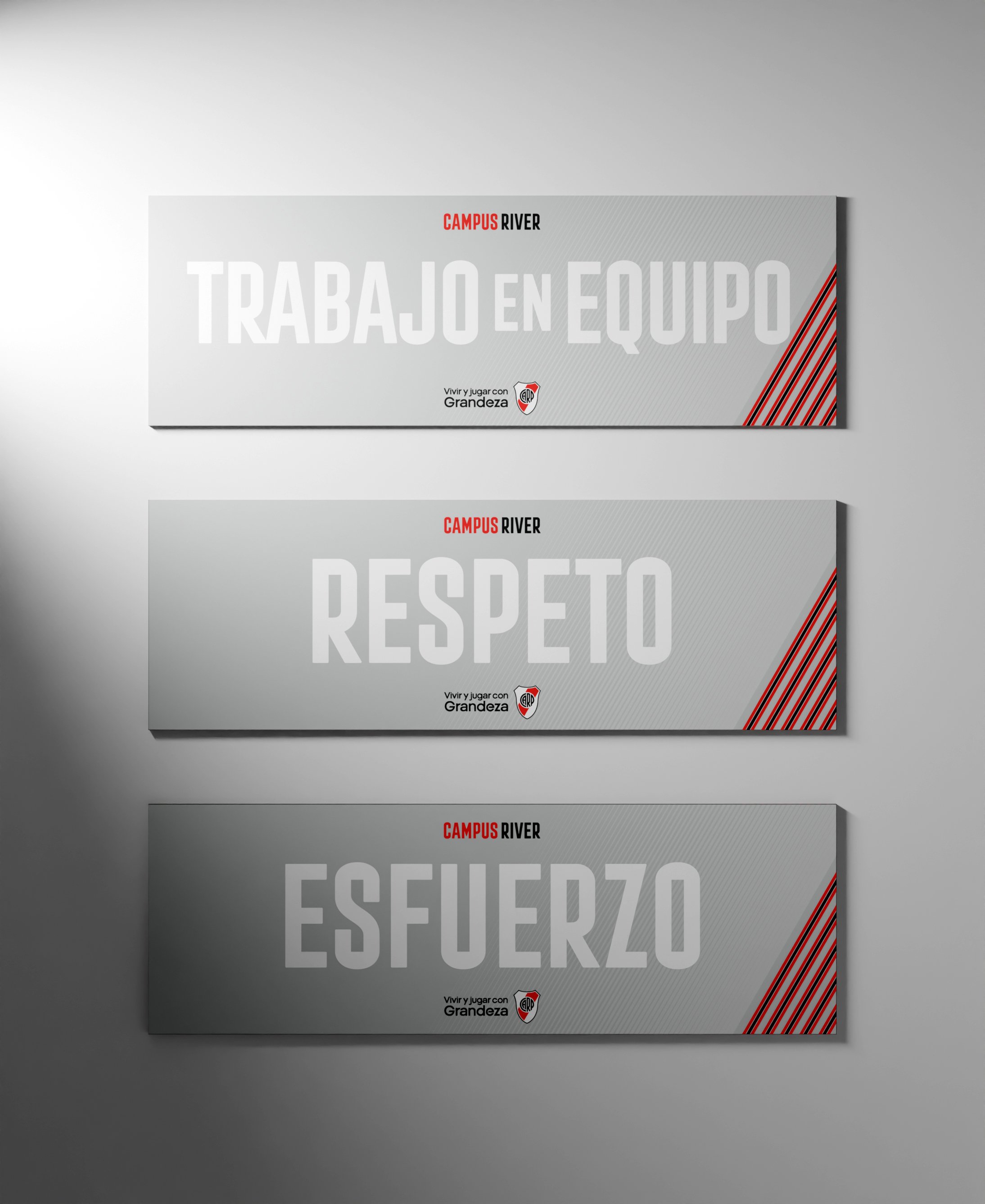 El objetivo del trabajo realizado consistía en tomar el ADN identitario de River Plate y trabajar en la siguiente evolución de la marca. Analizamos la historia de la identidad del Club y como sucede en marcas centenarias registramos 25 cambios en el escudo y 15 en el símbolo “CARP”.
