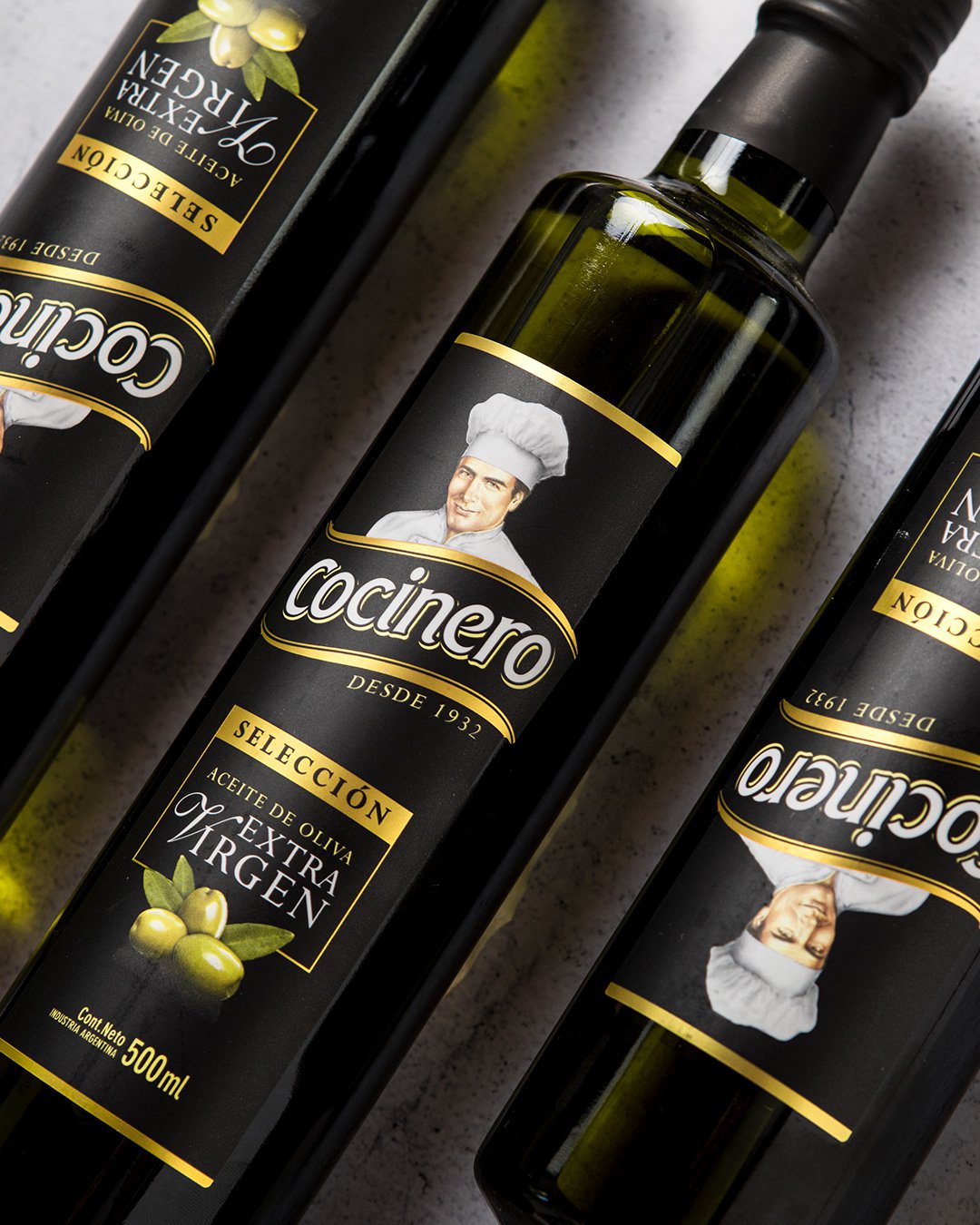Branding & Packaging Molinos contrató a Grupo Berro para diseñar la nueva botella de vidrio del reconocido aceite Cocinero. Ya en el 2012 nos habíamos encargado del rediseño de la marca, con lo cual la conocíamos muy bien. En esta oportunidad el trabajo era simple, teníamos que hacer un diseño de etiqueta que se presentara como la versión alta gama de la marca, otorgándole mayor prestigio a Cocinero. El resultado está a la vista, hoy Cocinero compite con elegancia en el segmento de los aceites de oliva que ofrecen alternativas en envases de vidrio.