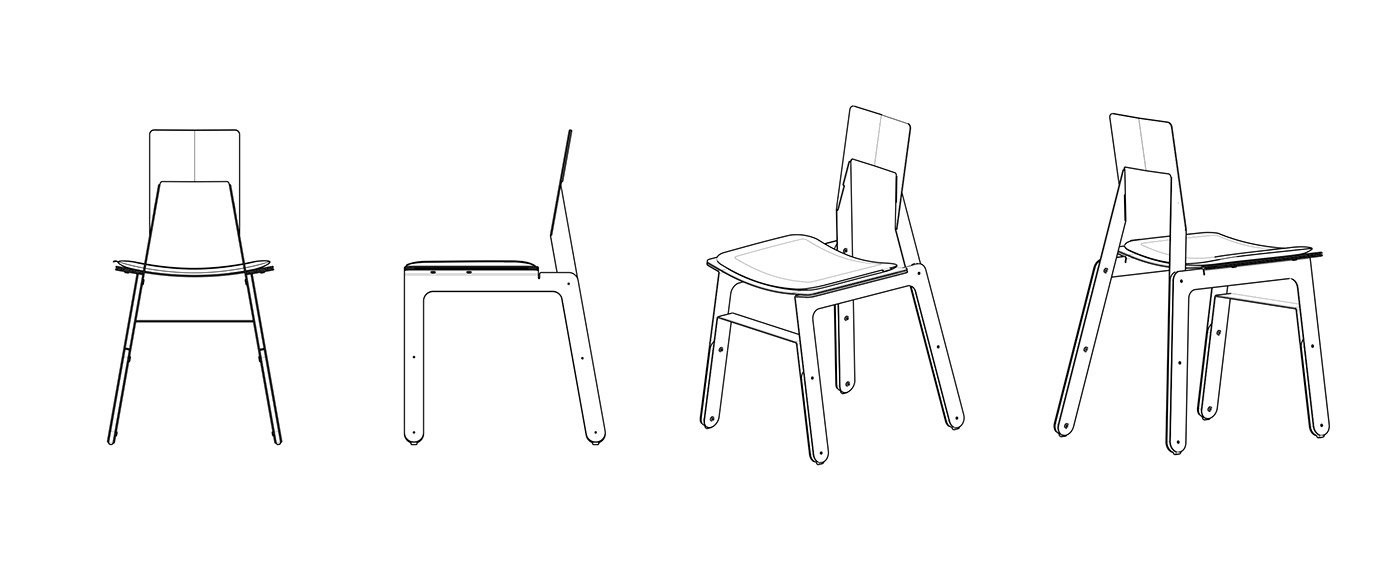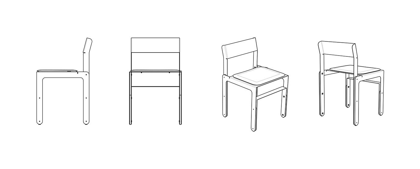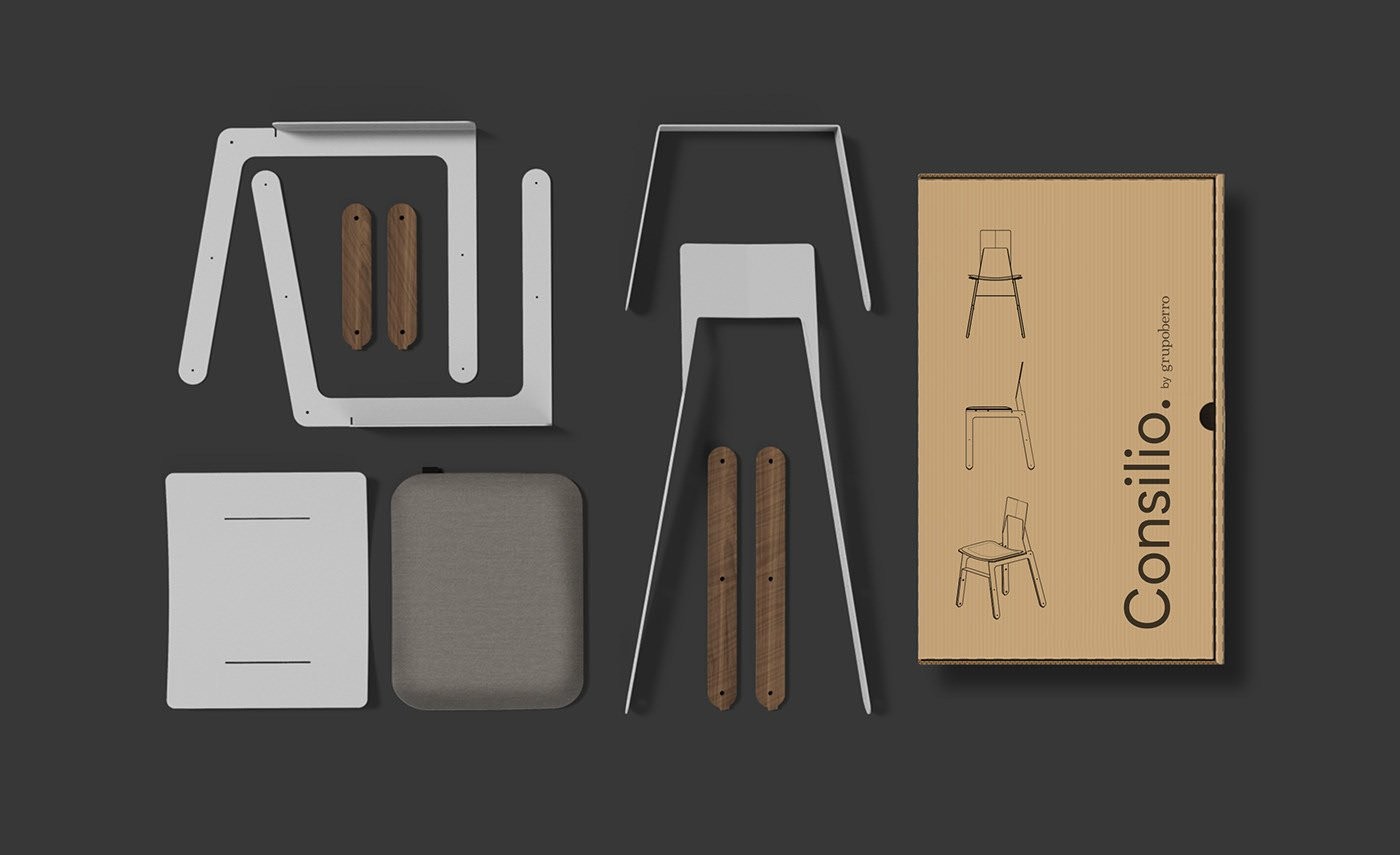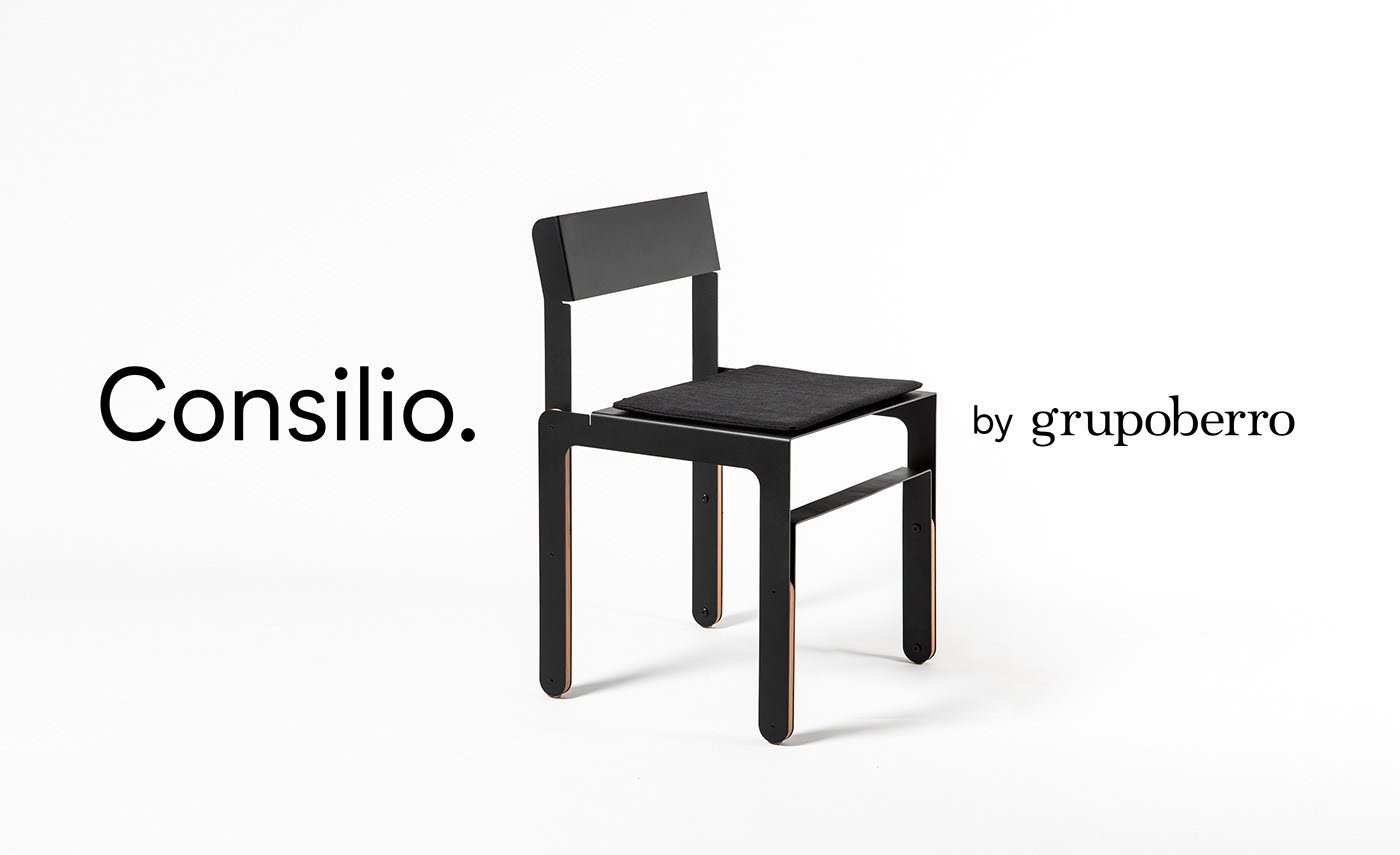 Basados en nuestra experiencia de diseño y desarrollo de equipamiento para otras empresas, y de nuestra pasión por el diseño de mobiliario, decidimos generar una nueva unidad de negocios. Consilio nace como una nueva división de Grupo Berro. Es un proyecto que se desarrolla y produce en el mercado interno argentino. Es sistemático y abierto a nuevas propuestas de línea en sus variantes. Pensado para fabricarse a baja escala, abarcable y con una inversión inicial baja en cuanto a lo productivo, nos da la posibilidad de destacar el desarrollo de diseño industrial, que es el valor que podemos generar desde nuestra empresa. Las sillas están fabricadas localmente por corte de chapa CNC, plegada y pintada al horno. En el armado se utilizan piezas de madera que le otorgan calidez al diseño y a su vez son los apoyos, de modo de evitar que las piezas duras toquen el piso. Para la zona de sentado se dispone de un almohadón, que se traba con dos pernos de aluminio. Esta pieza nos permite abrir opciones en las terminaciones y combinaciones posibles conjugadas con los colores de pintura. SILLA LAR Para este modelo definimos el uso laminar de las chapas y la liviandad visual, con líneas paralelas que intentan no intervenir el espacio que habita. SILLA FUGA El uso de las láminas y recursos formales se distinguen en este modelo y se evitan las piezas plásticas utilizadas habitualmente. En nuestra experiencia con el sector metalúrgico y de equipamiento, fuimos encontrando ciertos recursos que nos permitieron diseñar este objeto. Su nombre remite a la sensación de perspectiva en fuga que se percibe en sus diagonales y su remate en el respaldo.