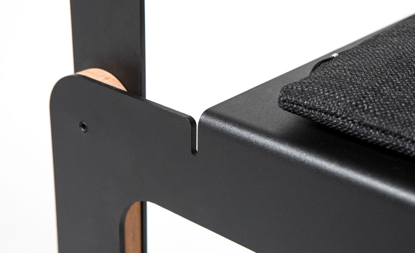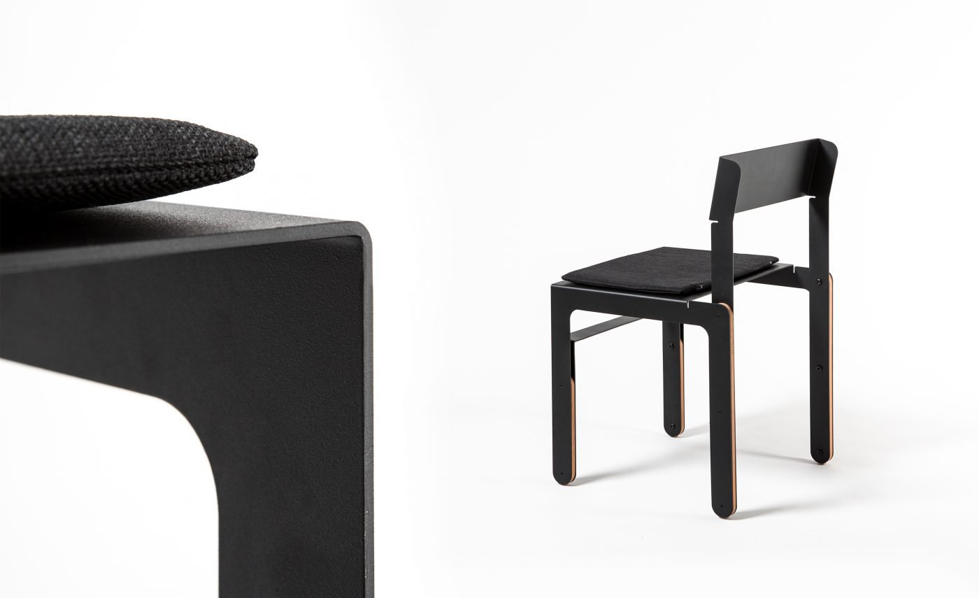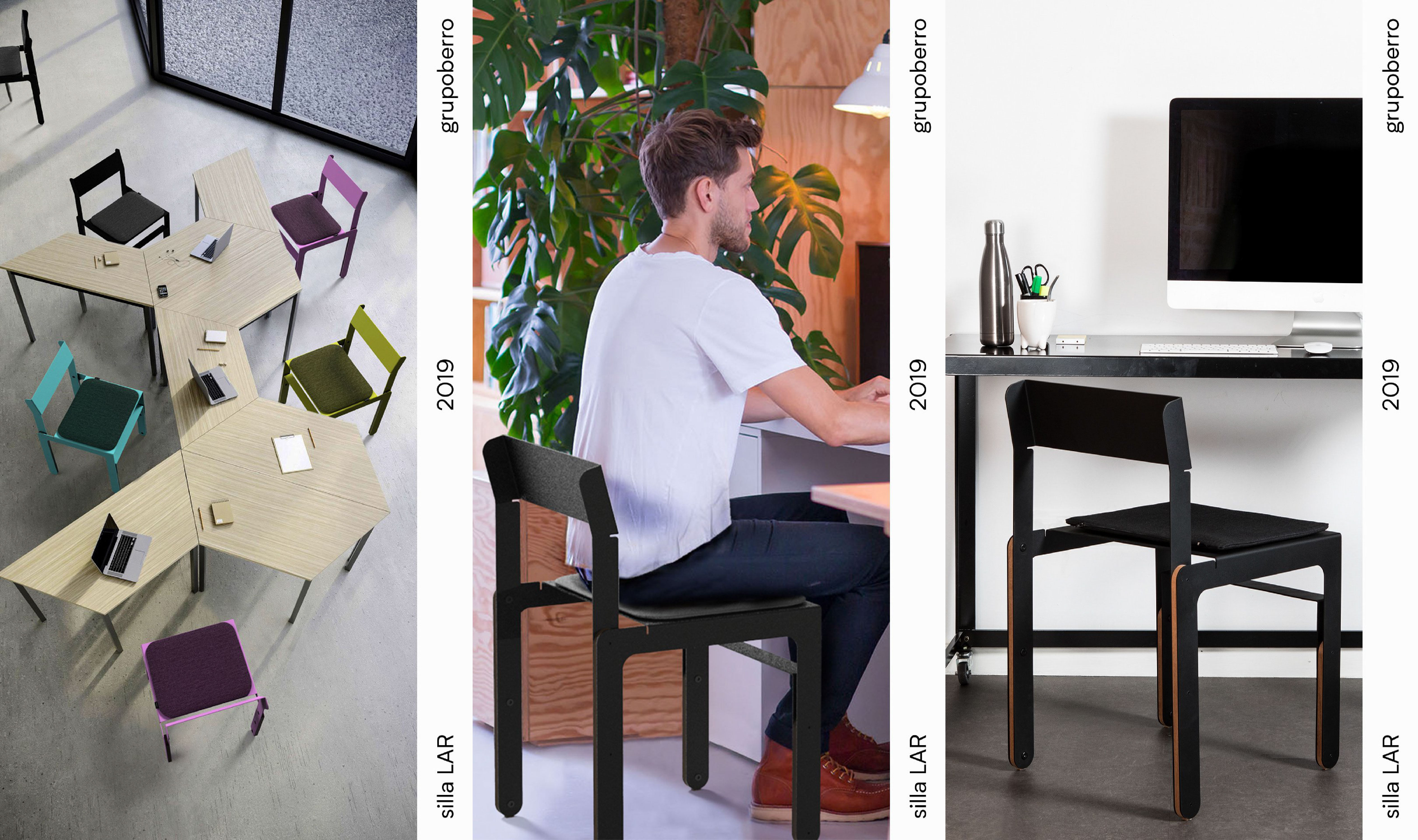 Basados en nuestra experiencia de diseño y desarrollo de equipamiento para otras empresas, y de nuestra pasión por el diseño de mobiliario, decidimos generar una nueva unidad de negocios. Consilio nace como una nueva división de Grupo Berro. Es un proyecto que se desarrolla y produce en el mercado interno argentino. Es sistemático y abierto a nuevas propuestas de línea en sus variantes. Pensado para fabricarse a baja escala, abarcable y con una inversión inicial baja en cuanto a lo productivo, nos da la posibilidad de destacar el desarrollo de diseño industrial, que es el valor que podemos generar desde nuestra empresa. Las sillas están fabricadas localmente por corte de chapa CNC, plegada y pintada al horno. En el armado se utilizan piezas de madera que le otorgan calidez al diseño y a su vez son los apoyos, de modo de evitar que las piezas duras toquen el piso. Para la zona de sentado se dispone de un almohadón, que se traba con dos pernos de aluminio. Esta pieza nos permite abrir opciones en las terminaciones y combinaciones posibles conjugadas con los colores de pintura. SILLA LAR Para este modelo definimos el uso laminar de las chapas y la liviandad visual, con líneas paralelas que intentan no intervenir el espacio que habita. SILLA FUGA El uso de las láminas y recursos formales se distinguen en este modelo y se evitan las piezas plásticas utilizadas habitualmente. En nuestra experiencia con el sector metalúrgico y de equipamiento, fuimos encontrando ciertos recursos que nos permitieron diseñar este objeto. Su nombre remite a la sensación de perspectiva en fuga que se percibe en sus diagonales y su remate en el respaldo.