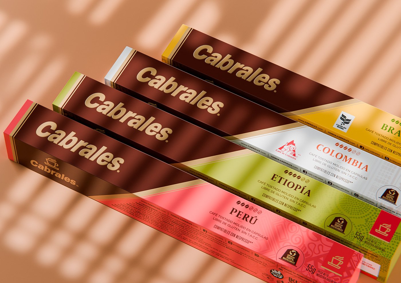 Hace cinco años, tuvimos el desafío de desarrollar la identidad de Cabrales, una marca sinónimo de buen café, y diseñar toda su amplia línea de packaging. Hoy, nos enorgullece anunciar que Cabrales ha vuelto a confiar en Grupo Berro para el diseño de sus cápsulas compatibles con Nespresso. El objetivo de este proyecto fue crear un diseño premium que posicione las cápsulas acorde a la excelente calidad de los cafés de origen que ofrecen.