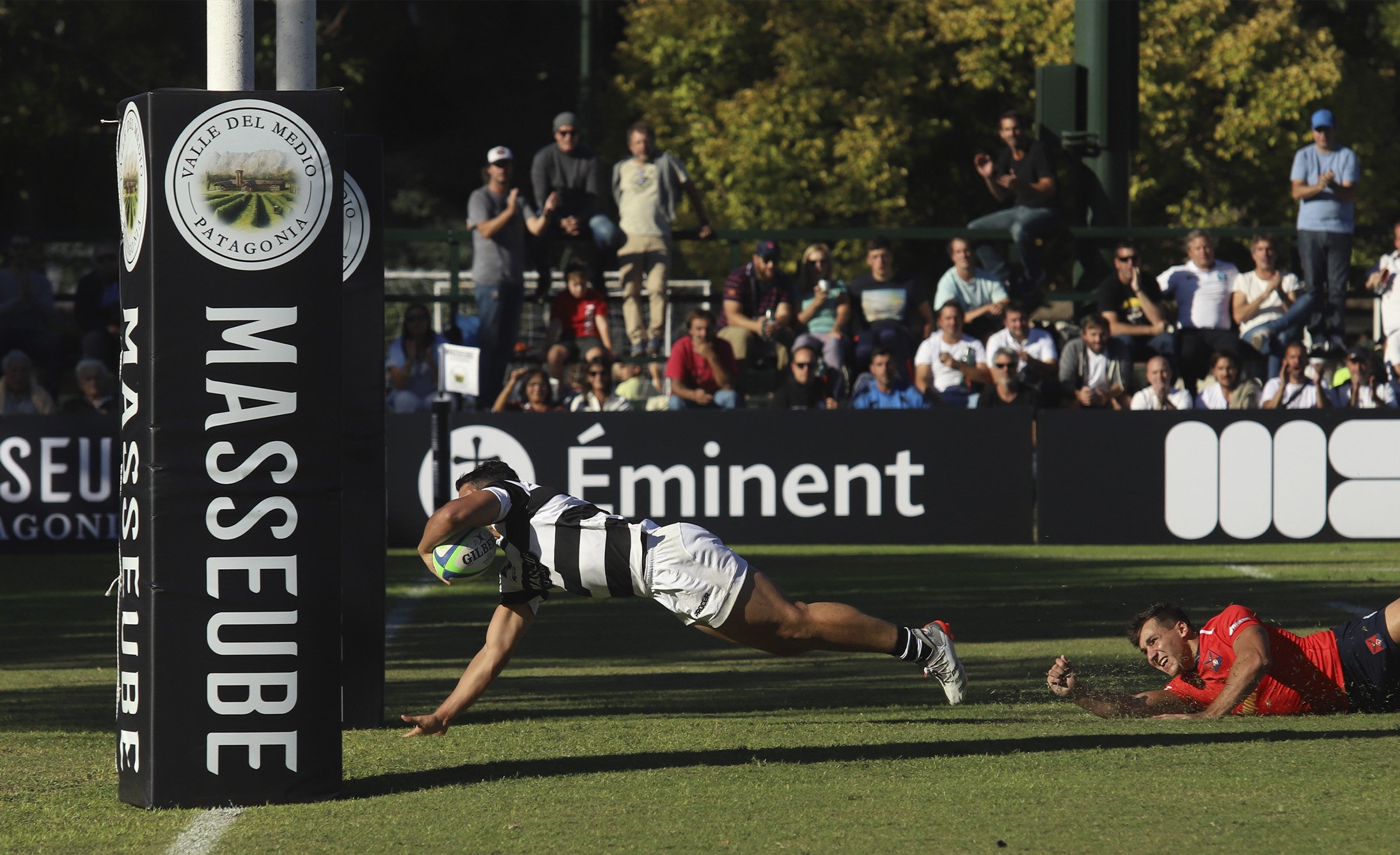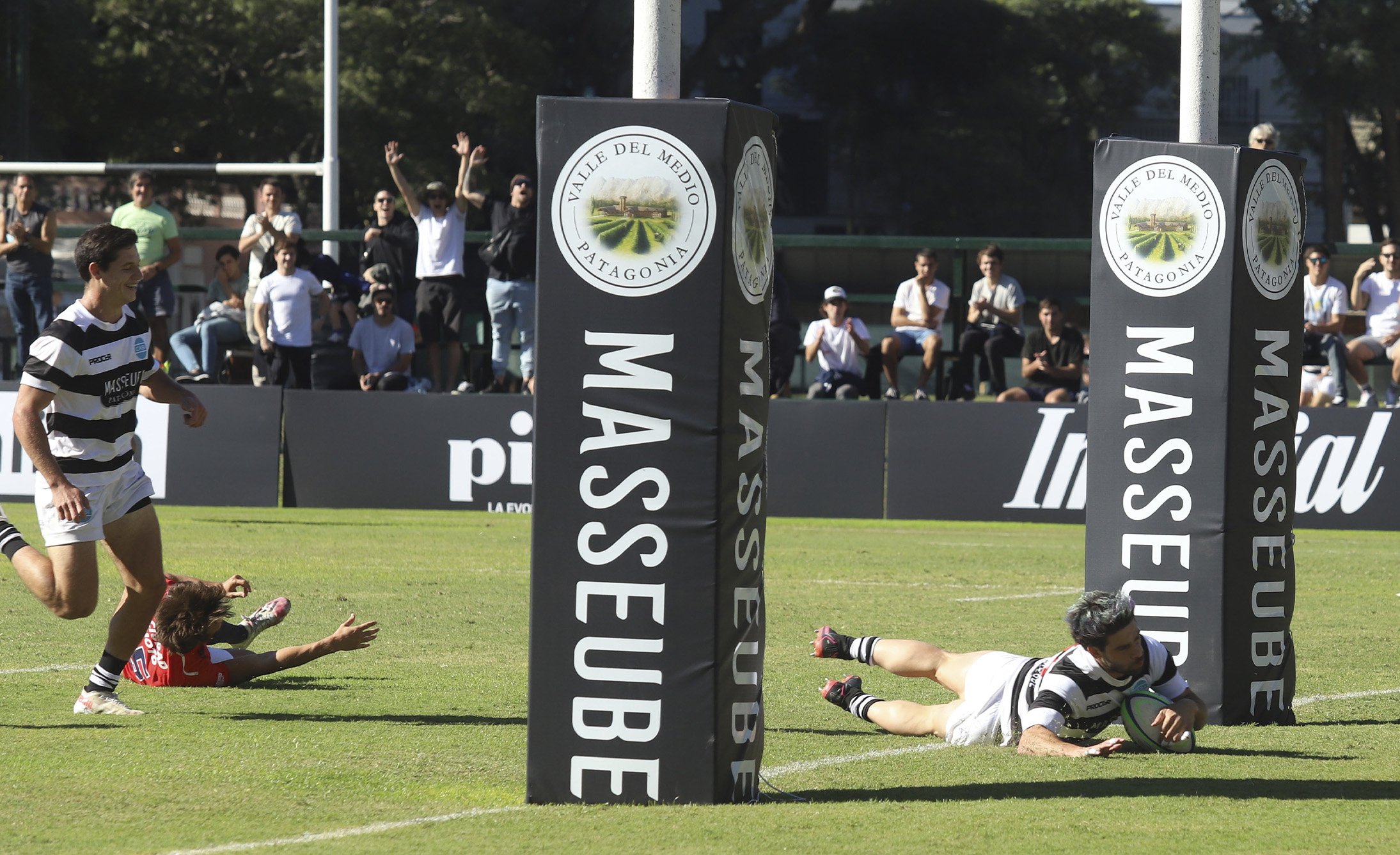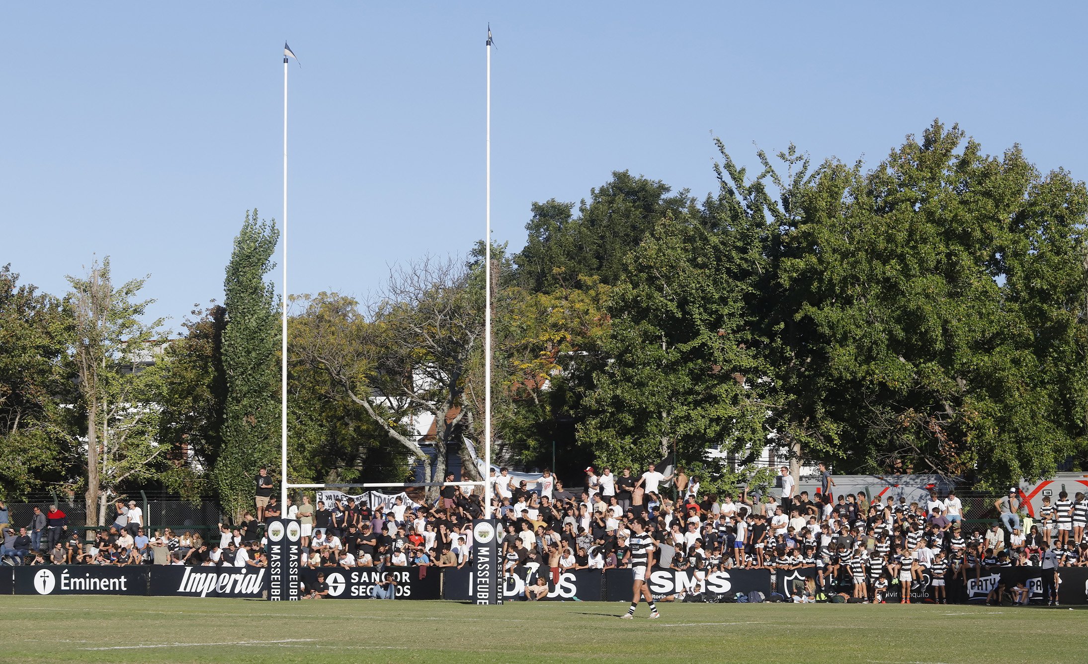 Masseube & Club Atlético San Isidro Main sponsoring Branding Este proyecto es muy especial para Gonzalo Berro. Por un lado está Masseube, una marca de Diego Lerner y Nico Nuñez a quienes Grupo Berro acompaña con el branding y el diseño hace más de 10 años. Y por otro lado está el CASI, que es el club donde Gonzalo se formó y jugó 11 años al rugby, y donde están sus grandes amigos de toda la vida. El trabajo, en líneas generales, era simple. Había que aplicar la identidad de Masseube como main sponsor del CASI en la indumentaria de rugby y de hockey y también en todos los elementos de comunicación de las canchas (cartelería, protectores de los palos y banderines). Pero el desafío era lograr que el diseño de Masseube no se aplique de una forma invasiva, sino que participe logrando una buena presencia visual y que, como nuevo sponsor, el diseño se entienda como parte natural del branding del CASI. En vez de usar el color bordó de Masseube sobre el tradicional blanco y negro de CASI, decidimos aplicar el logotipo sobre fondo negro calado en blanco, brindando elegancia y distinción en las camisetas y también en la cartelería y demás elementos de comunicación. El CASI, aprovechando la celebración de los 120 años del Club, logró que el resto de los sponsors también apliquen sus marcas en blanco sobre negro. Hoy la “catedral de rugby”, como se conoce a la cancha uno del CASI, se presenta con mucha elegancia y proyecta una fuerte consistencia visual.