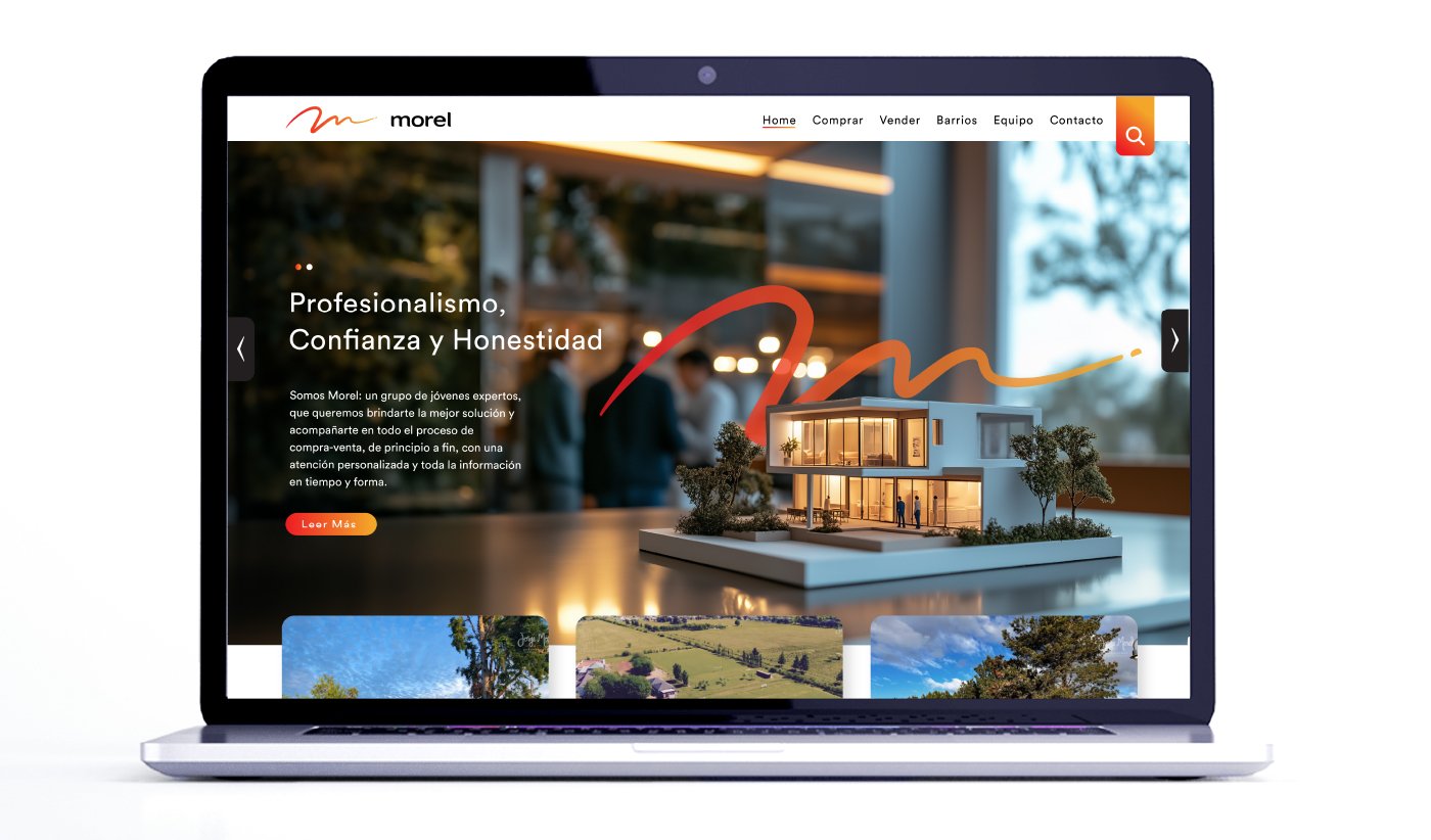 Morel es sinónimo de servicios de real estate de primera línea, combinando tecnología innovadora desarrollada in-house con una atención personalizada única en el sector. La nueva identidad debía transmitir estos valores: modernidad, profesionalismo y cercanía.