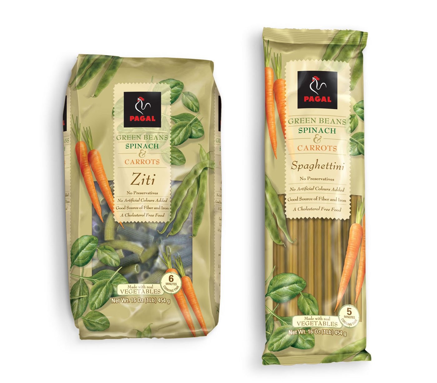 Pagal es una marca de pastas gourmet para el mercado de Estados Unidos, de la empresa Catalana Comercial Gallo. Diseñamos un packaging bien natural aplicando recursos visuales contundentes, usando espacios transparentes para que las imágenes se vinculen con el producto real, destacando el “valor verdad” de sus componentes: zanahorias, espinacas y porotos.