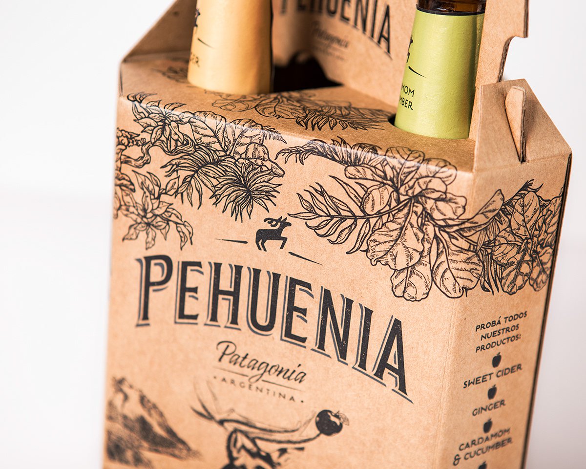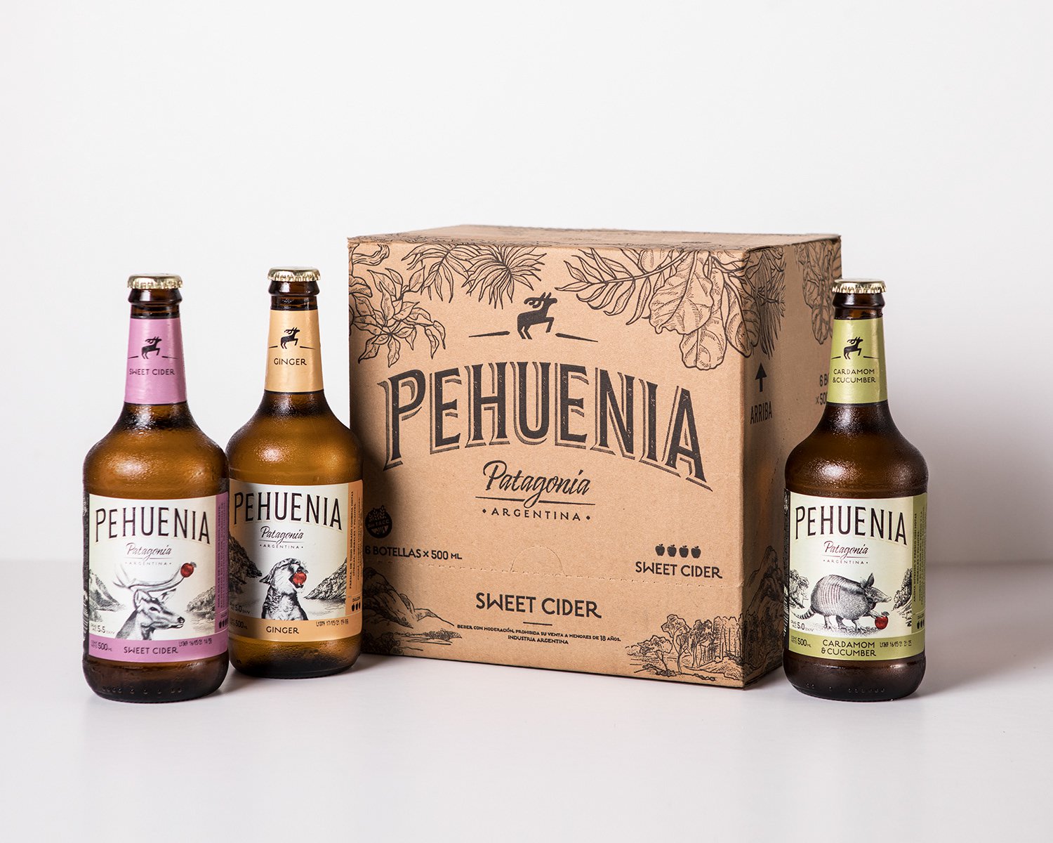Basados en el éxito de la sidra 1888, Saenz Briones convocó a Grupo Berro para desarrollar el branding y el diseño de packaging de Pehuenia. Apalancados en un mercado que le abrió las puertas al consumo de sidra, presentar una nueva marca que ofrece un producto artesanal de excelente calidad es una gran oportunidad. Pehuenia se presenta en el mercado con tres propuestas novedosas: Sweet Cider, Ginger y Cardamom & Cucumber. Con ilustraciones de estilo ‘grabado’, la identidad de Pehuenia combina su logotipo con diferentes animales de la Patagonia: el ciervo, el puma y la mulita cada uno jugando con una manzana, que es la base de la buena sidra.