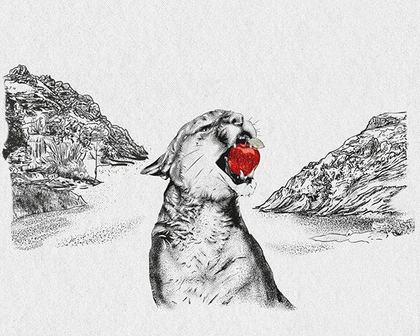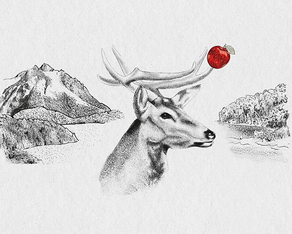 Con ilustraciones de estilo ‘grabado’, la identidad de Pehuenia combina su logotipo con diferentes animales de la Patagonia: el ciervo, el puma y la mulita cada uno jugando con una manzana.