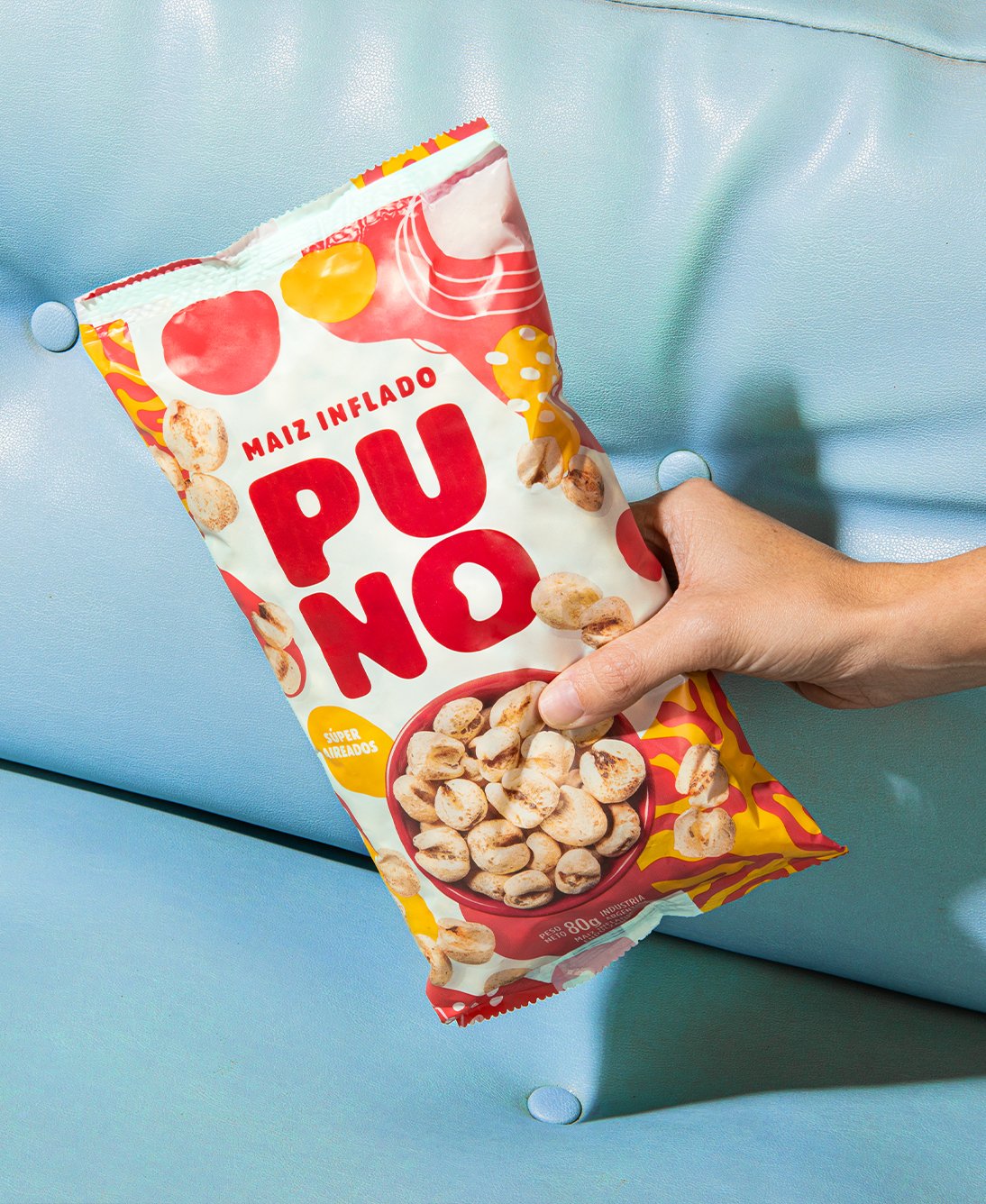 Puno es una nueva marca de maíz inflado producido en la ciudad de Tandil. Juan Alvarez, es un joven emprendedor que decidió invertir todos sus ahorros para construir una pequeña planta modelo para la elaboración de snacks saludables. Habíamos trabajado previamente con Juan en el branding de otra marca y por esa buena experiencia nos convocó para este nuevo desafío. Aprovechando un viaje de visita de Gonzalo Berro a Tandil, fue a conocer la flamante planta de elaboración. Un edificio moderno y funcional diseñado especialmente para el proyecto cuidando cada detalle de arquitectura y decoración. Gonzalo tuvo la posibilidad de ver pruebas iniciales de producción y conocer la insólita forma en que se elabora este snack. Una máquina recibe los granos y, a modo de disparo, expulsa el maíz inflado a un embudo gigante que luego caen por gravedad para terminar siendo enviados y envasados en las bolsas que diseñamos en Grupo Berro. Para el diseño del packaging trabajamos con texturas y tramas extraídas de imágenes de la naturaleza en colores cálidos sobre fondo blanco para que la identidad se muestre artesanal, cercana y saludable. Un diseño alegre y colorido que invita al consumidor a probar estos riquísimos snacks.