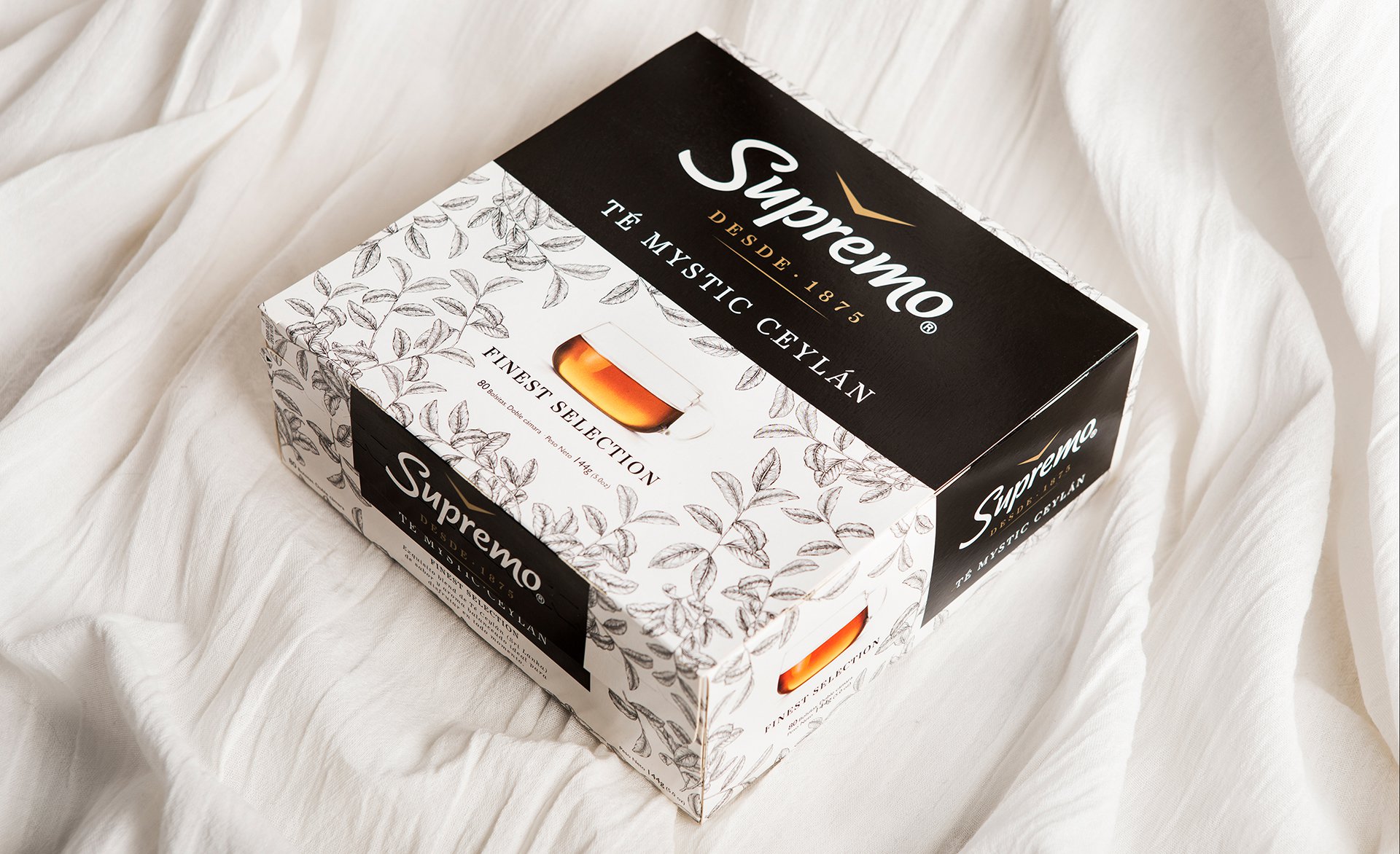 Cambiaso, empresa chilena de gran trayectoria, nos convocó hace unos años para que rediseñemos la marca de té Supremo, líder en su categoría y también icono nacional. En ese momento hicimos un exitoso diseño con una arquitectura sólida para toda la línea de productos que permitió a Supremo destacarse fuertemente en el punto de venta. Cambiaso decidió lanzar unos nuevos tés y nos contactó nuevamente. En esta oportunidad el desafío era diseñar un nuevo té premium denominado ‘Supremo Luxury’ y un nuevo té de Ceylán, denominado ‘Supremo Mystic Ceylán’. Los dos necesitaban mostrar sus virtudes individuales siendo parte de la identidad de la marca.