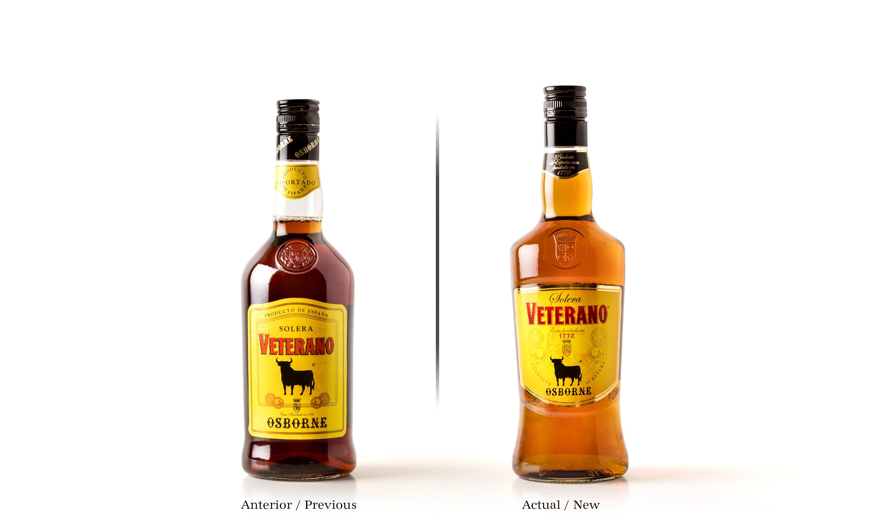 Al ver “el antes y después” de Veterano, se puede apreciar cómo cada elemento que hace a la fortaleza de la marca sigue presente en el nuevo diseño, mucho más innovador, en línea con la tendencia mundial en bebidas espirituosas, presentando una marca mucho más fresca y vigente.