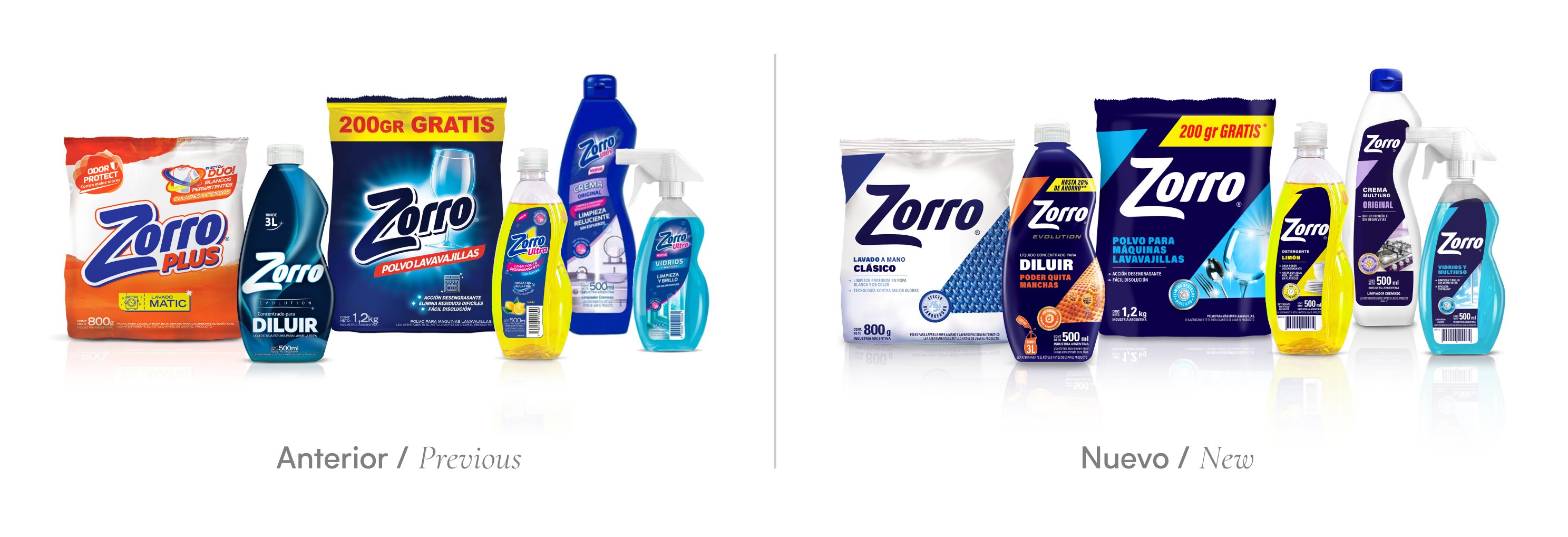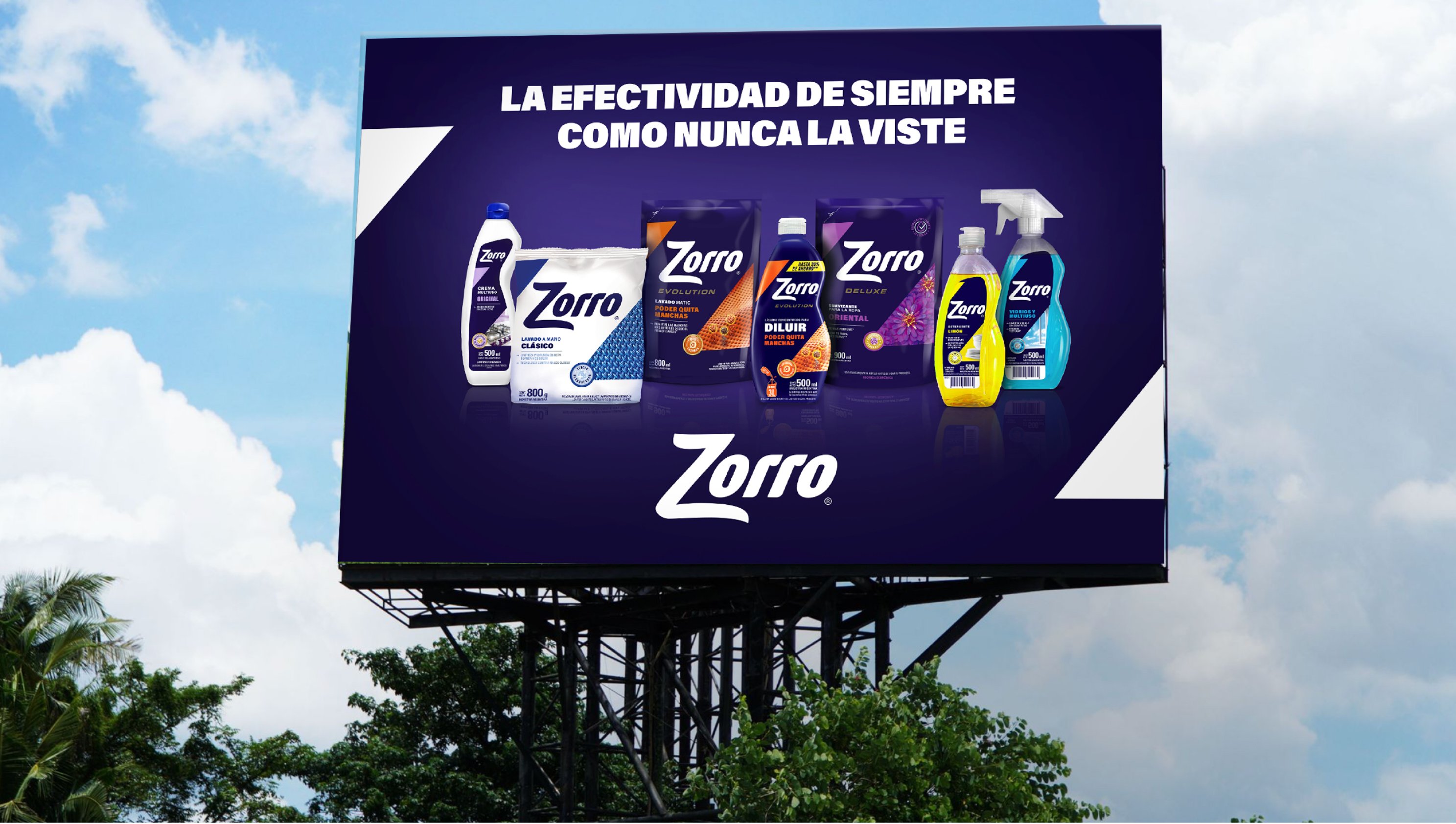 Con más de 60 años en el mercado, Zorro es una marca reconocida por ofrecer productos de limpieza de alta calidad a precios accesibles. En su evolución, la marca amplió su portafolio hasta convertirse en una línea completa de cuidado del hogar, presente en siete categorías y con fórmulas de alto rendimiento que compiten con las de marcas líderes. Sin embargo, su identidad visual no reflejaba esta transformación.